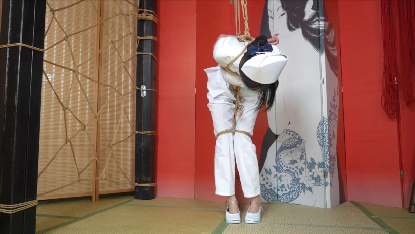 1.直臂,股绳 折腿缚,脚上穿着罚站道具!