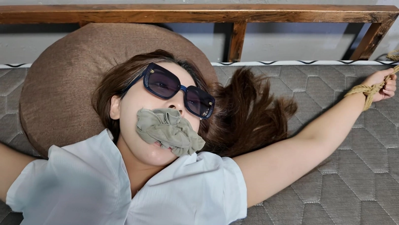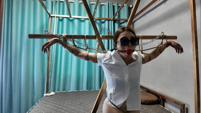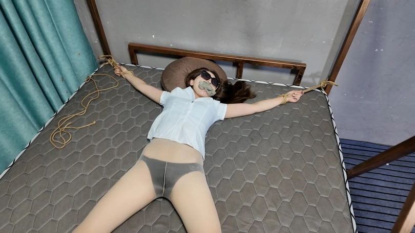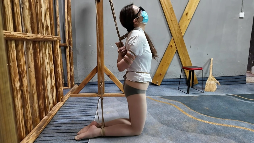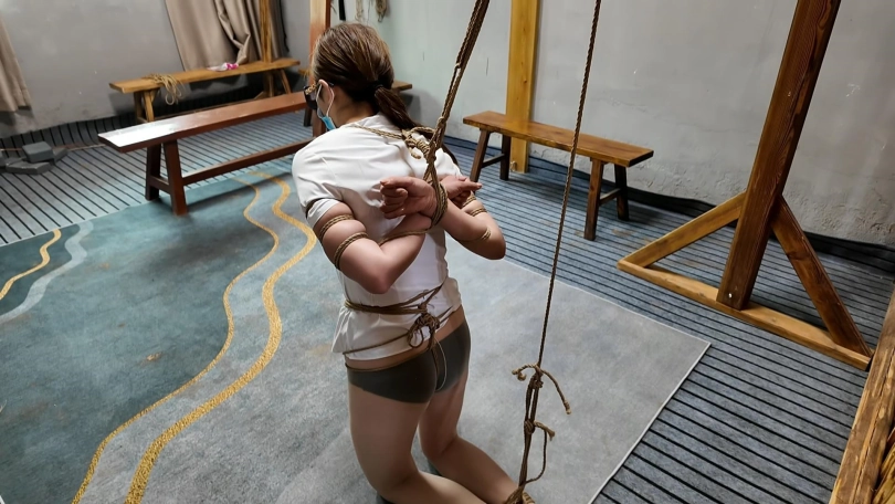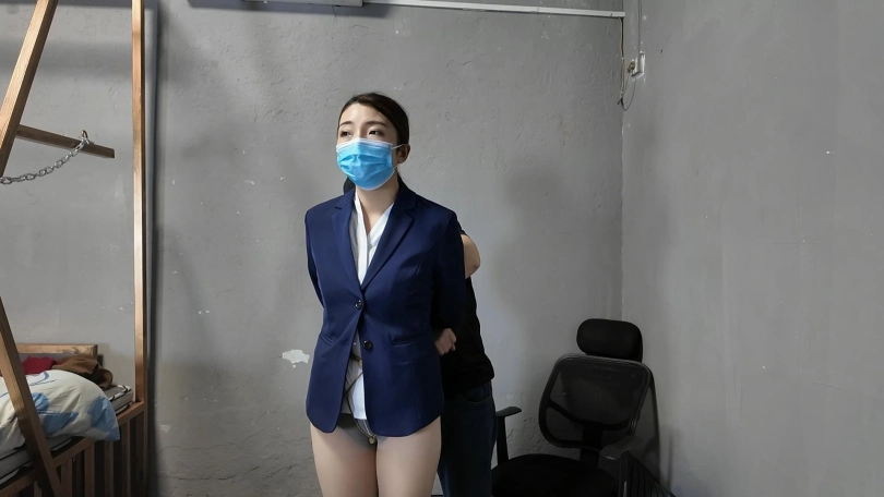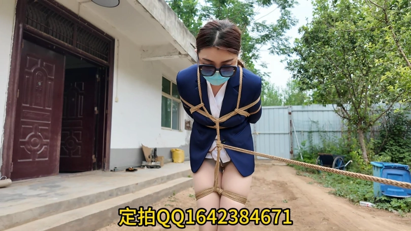 绑匪把女白领劫持到一个废弃院子,捆绑股绳牵到树林里面调叫,吊到树上鞭打屁股,脱掉上衣,股绳牵到房间继续调叫