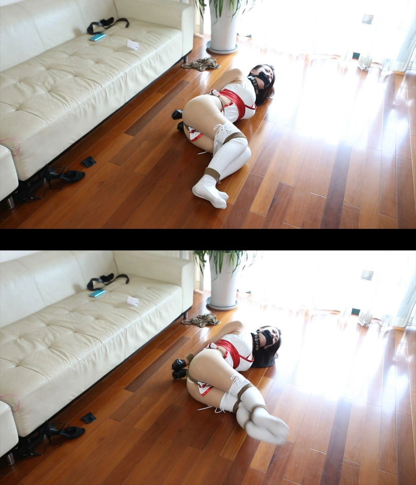 但没多久女忍者就绝望的发现男人非常狡猾的把她的手部也包裹成了胶带球,这样的她根本就没有挣扎逃脱的可能性。。。