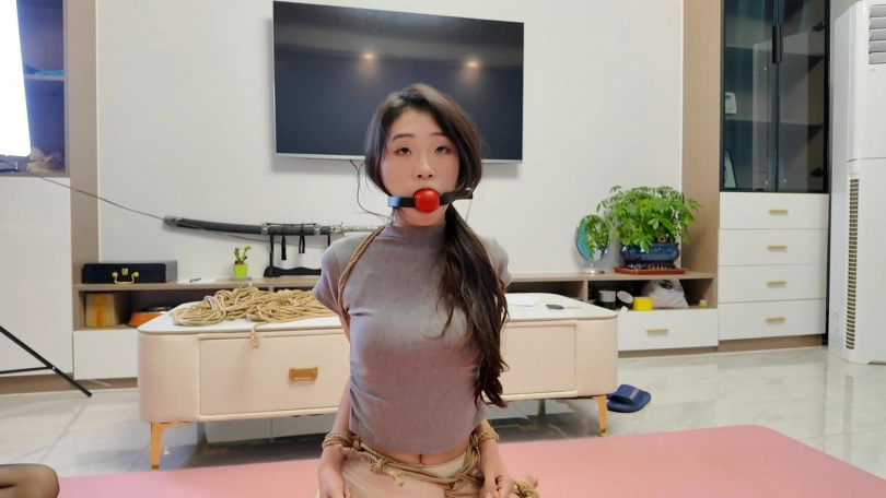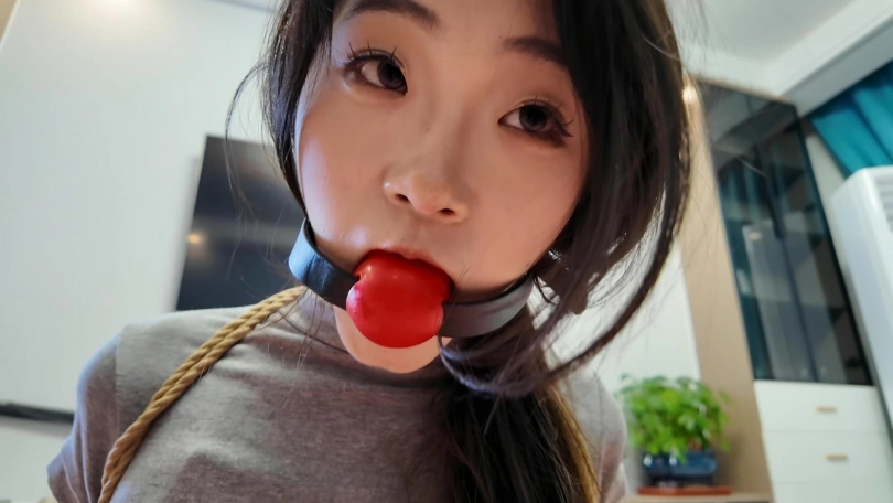 把小夏绑成青蛙,先用小恶魔口塞,再用充气口塞