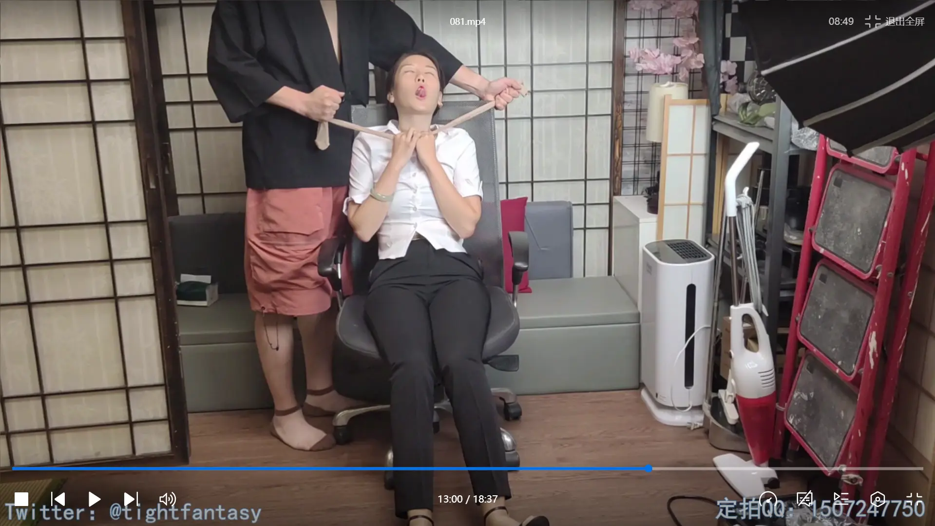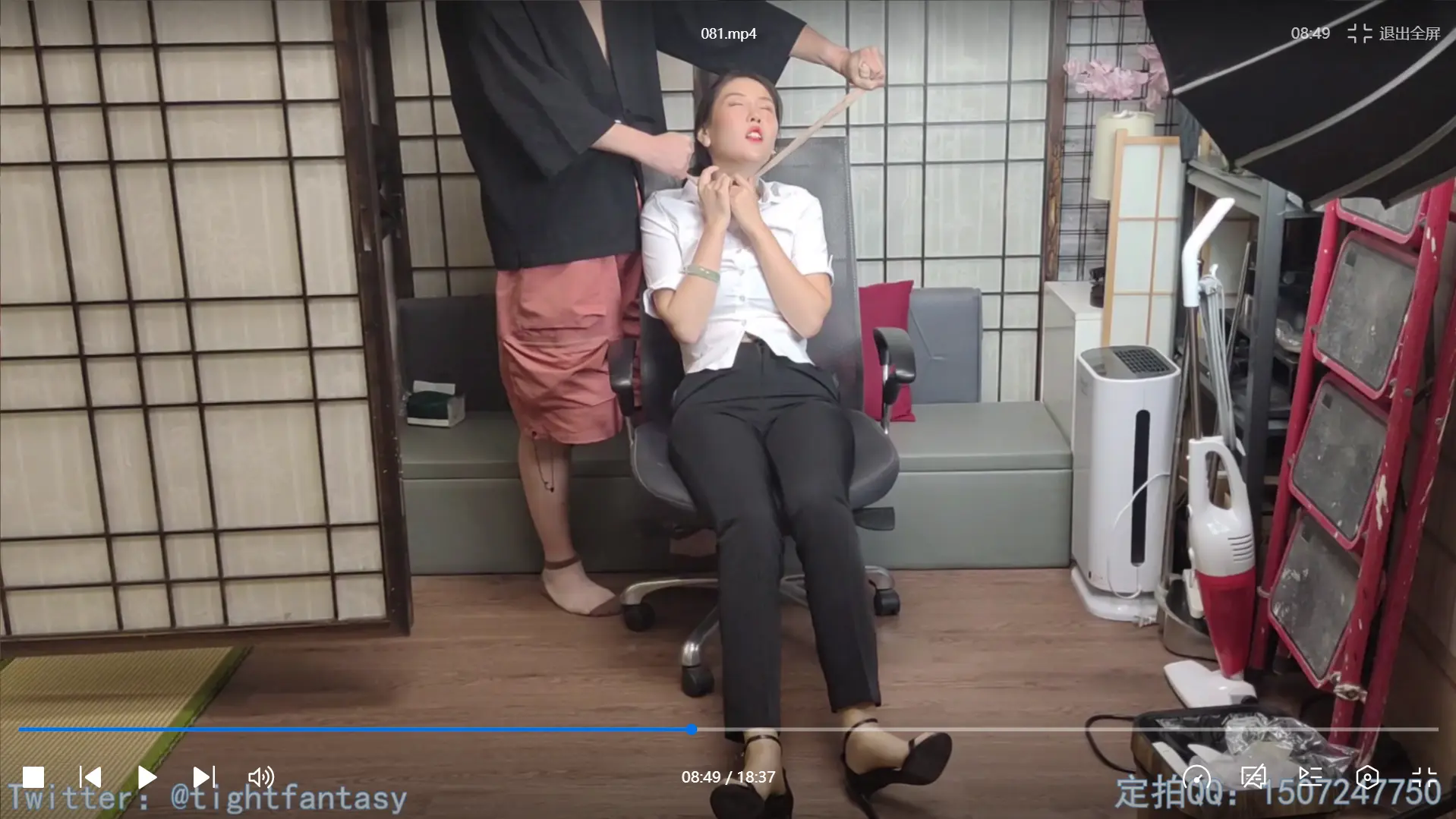 服装:OL服装,上身紧身白衬衫,下身阔腿九分裤或七分裤,