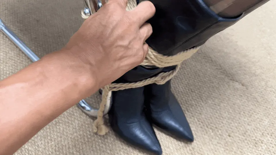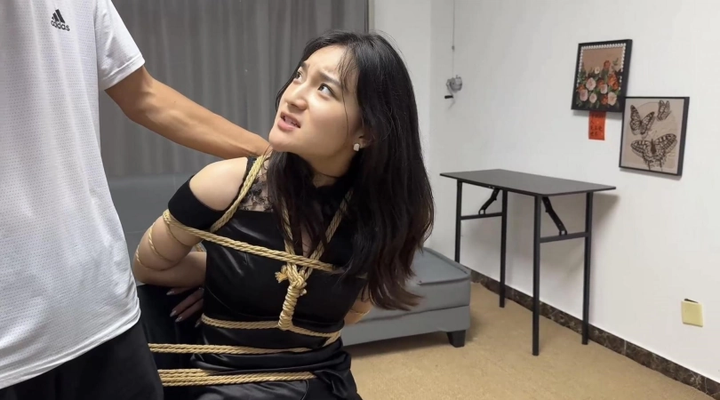 其实本来想看的是黑丝脚但因为忘记加标点拍成了裸足hhh,不过这样一来与第一部的反差就更为明显,轻柔的丝绸黑裙加上可可被绑住的大白长腿看来别有一番凄美之感,也符合验明正身押赴刑场的惯例。