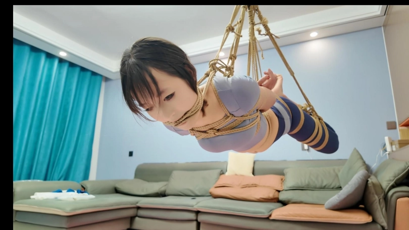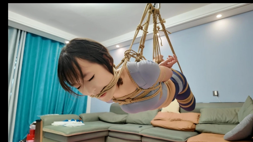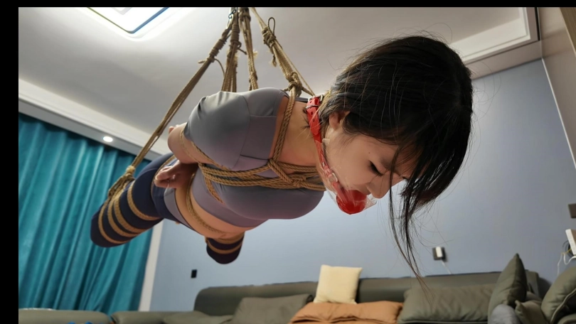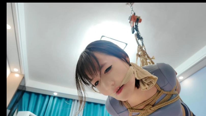 晓倩被驷马捆绑在地上,用滑轮组慢慢的升起,绳子勒嘴,最后把脸部还勒出血印子,最大口球堵嘴,再用胶带粘在口球外面,流出来的口水沾满一脸,再用丝袜勒嘴,一套下来,把晓倩全身绑出莎来了,折磨的浑身酸软