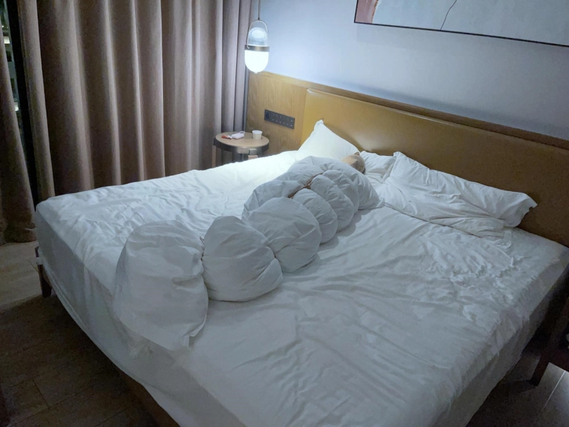 为了安抚妹子情绪,我降低了室内的灯光,希望能让妹子睡着。