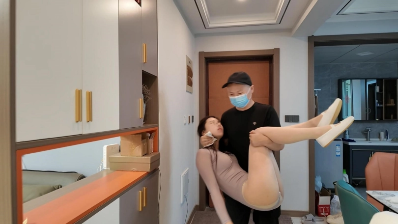 十一身穿连体舞蹈服,在家练舞蹈,被变态捂晕、抚摸