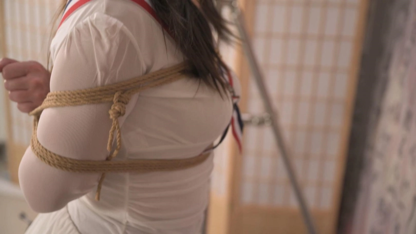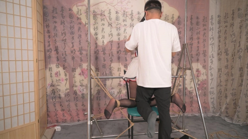 这个看似简单的姿势,的确给模特不少压力,之前还以为模特矫情,这次换雪碧尝试,没想到反应更大,呼吸渐渐急促,自然的发出呻吟声,特别喜欢雪碧这种自然的声音,特别是TK时,弱弱的喊着“不要”,太有馁感觉了。还有她时不时回头看一下自己是如何被绑着受罪的,特别get她这个点。