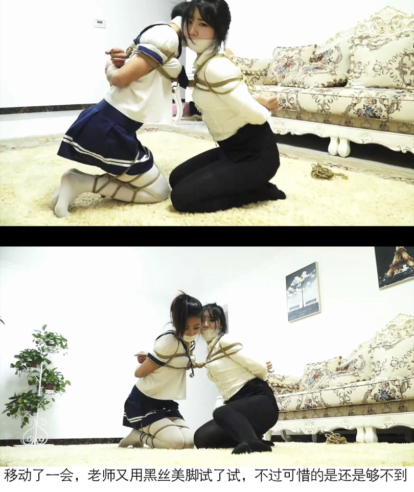 【逍遥】《创意双人缚02》黑丝教师+白丝水手服 吴晗+夏炎双人严密连缚 丝袜美腿折叠捆绑 超新颖有趣挣扎剧情