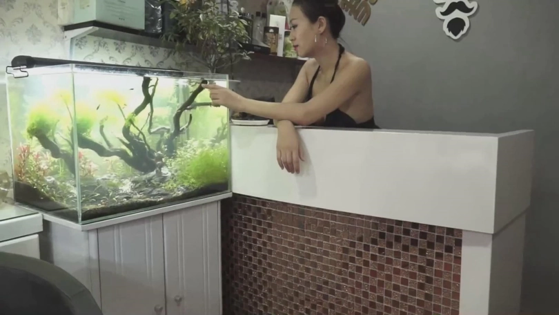 到了厕所,女孩发现厕所很干净,根本不需要打扫。这时,老板娘也跟了进来。