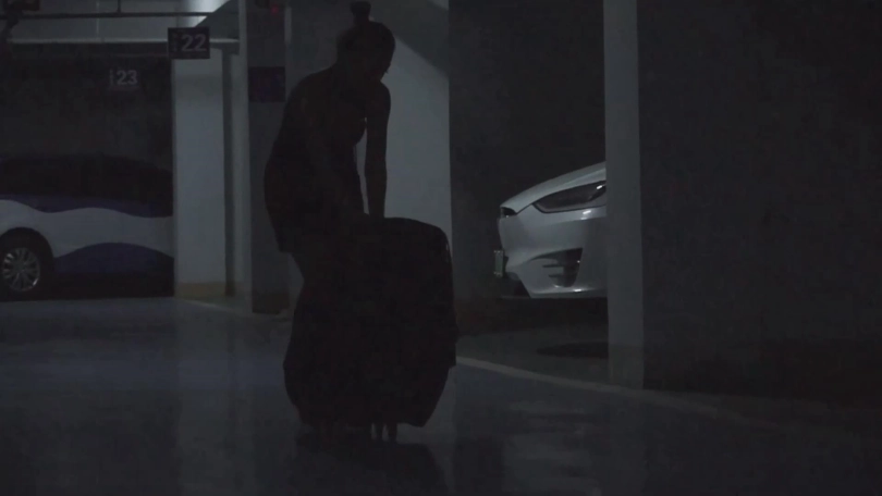 老板娘鬼鬼祟祟的拉着一个大行李箱绕小路,回了家。