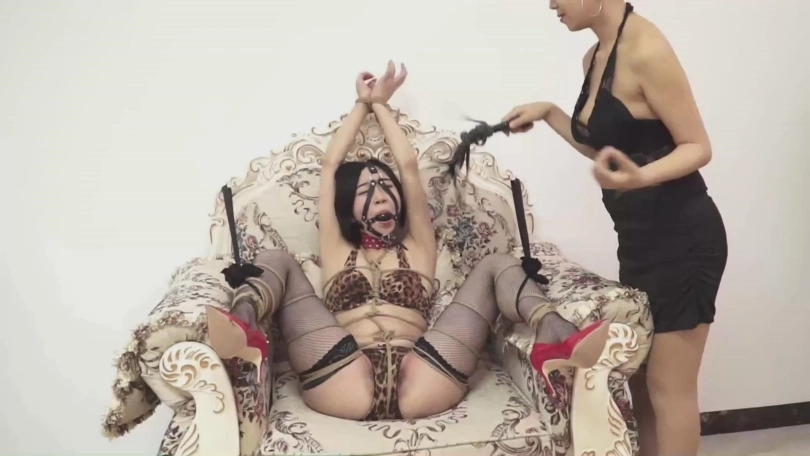 老板娘玩得正嗨,忽然有人敲门。女孩趁机大声呜呜呜叫。