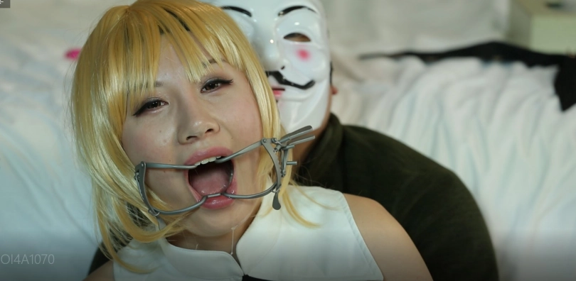 【猎美】调教SBBAE下 强制分腿股绳跳蛋攻击拘束衣贞操带窒息口塞