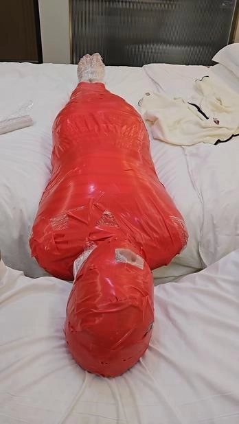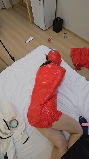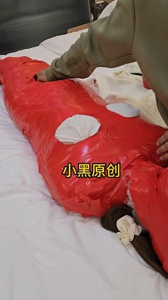 【小黑】胶带全包木乃伊,各种挑逗,真实对话,还有呼吸玩法,把胸口剪开,没穿内衣,乳头清晰可见,震动高潮,振到受不了。
