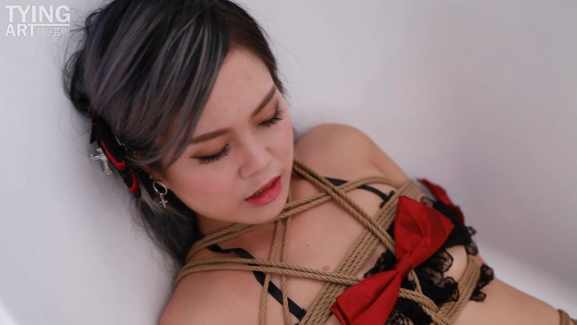 【TYINGART】大胸长腿的情趣內衣網襪Helloween萬聖節小魔女 被麻绳紧缚