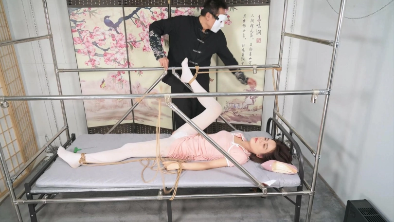 梦想之床该轮到言妍来体验分腿固定,根据她纤细的身材,特别加了一根杆子,这样可以强制把腿翻过来再分腿,比起镣铐,她更愿意用绳子固定,那更好了! 这个姿势,就是放置在那里都赏心悦目,但更想听到她那悦耳的呻吟声,只是需要被狠狠折腾一下才能激发,被这样绑着,她的弱点基本都暴露出来了,好像浑身都是痒痒肉,努力的用束缚的手臂阻挡,点击器的效果更佳,随后的放置就不出所料的有了天然“音效”,放置的时候给了很多特写,还特意用了一些第一人称运镜,让大家都可以沉浸式的感受一下,梦想的妹子被固定在梦想之床中的美好画面。