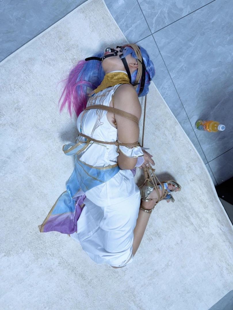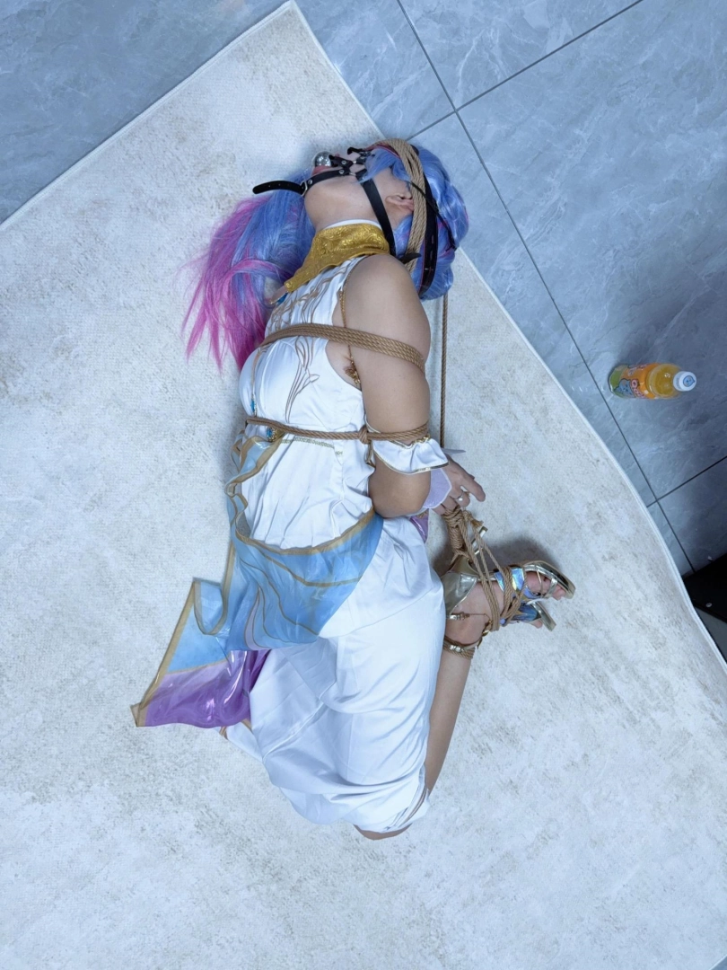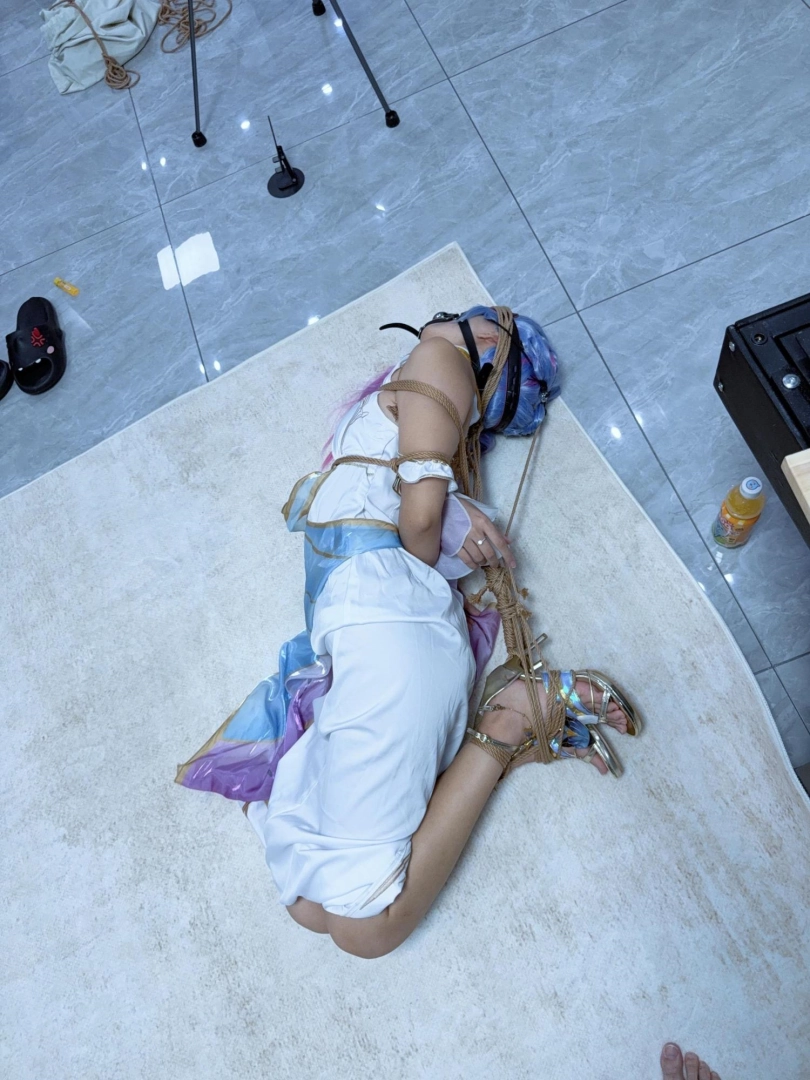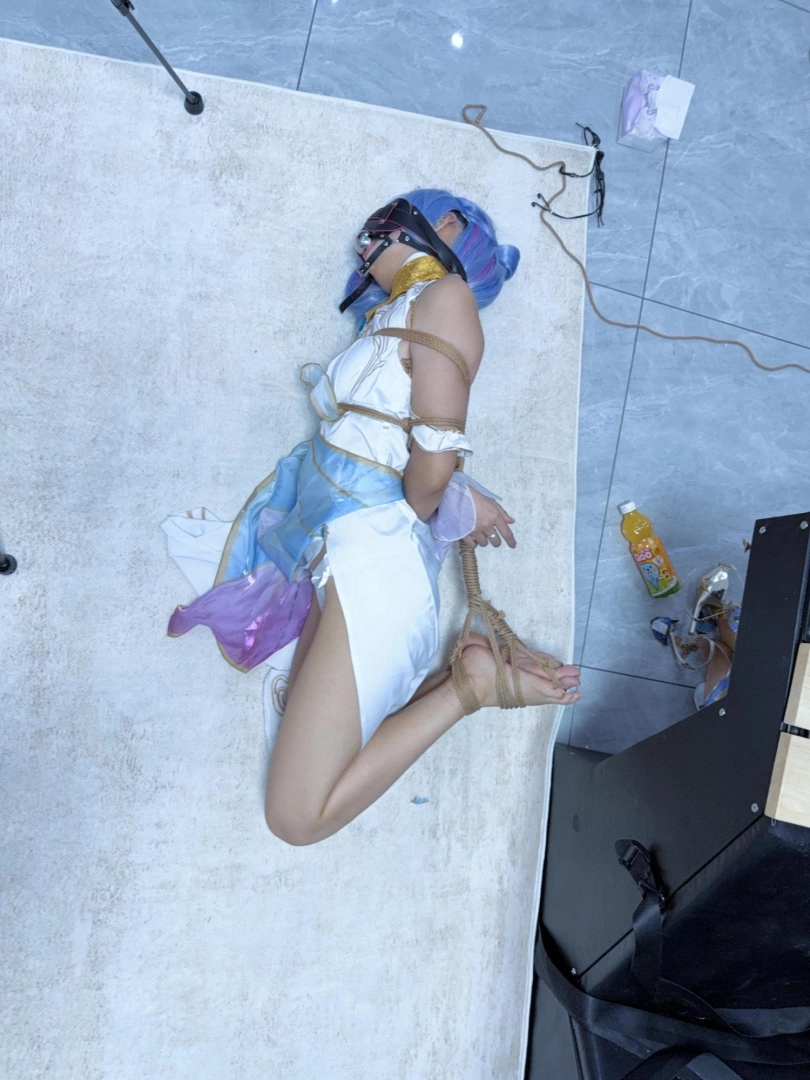 这次真的狼狈惨了,绑到几乎想吐,哭的鼻涕都糊在脸上,超级狼狈,前后对比超级反差——刚cos好的时候超级惊艳可爱,被折磨哭哭后眼泪鼻涕都流在脸上,口水也拉丝,狼狈的不像话。