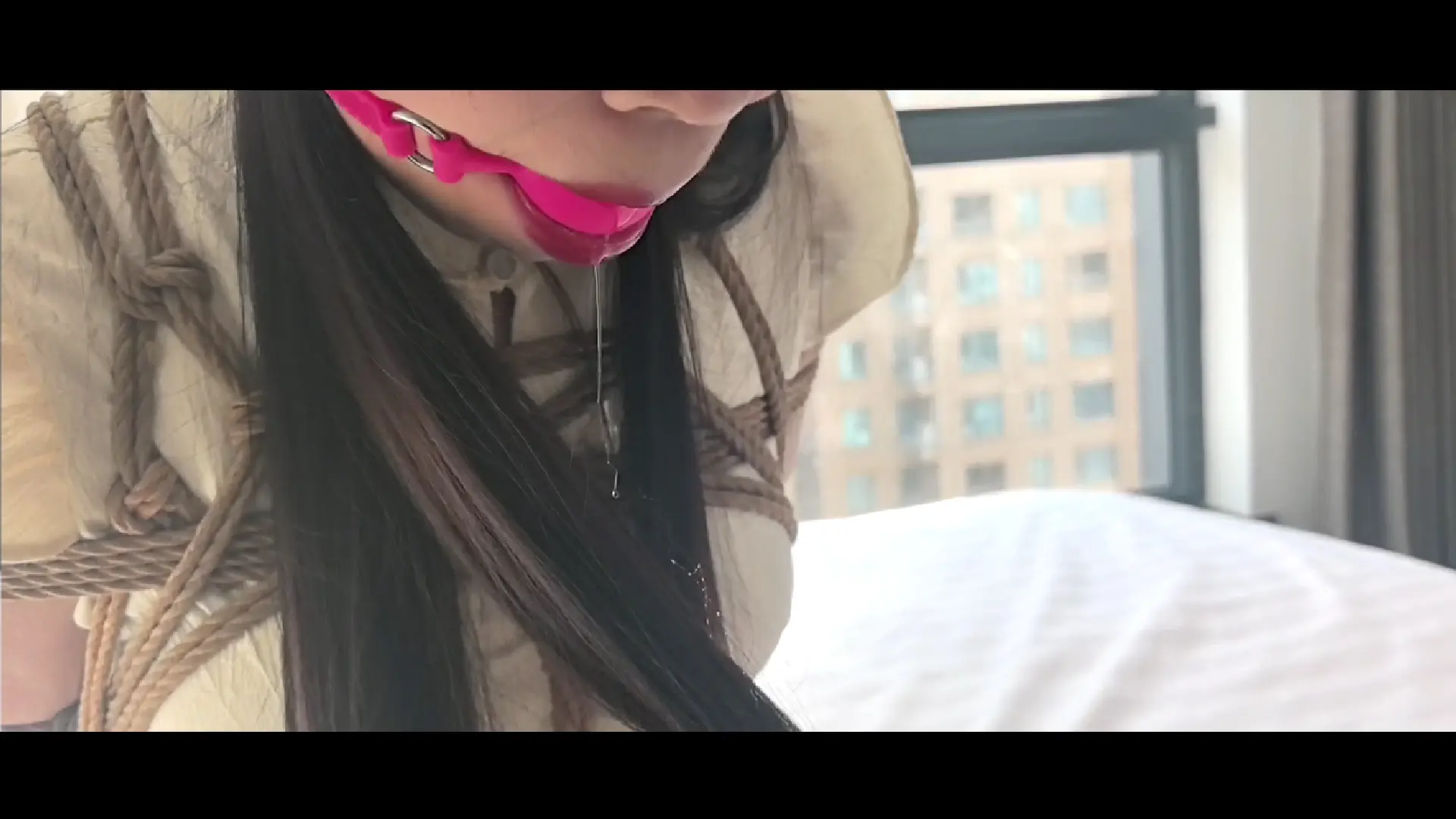 语涵马具沙发床上放置挣扎 大号口球口水横流