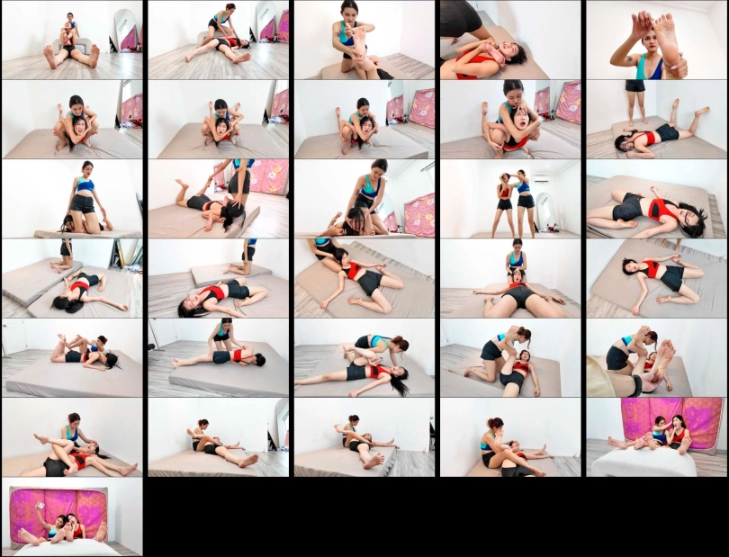 Rose (Blue top) completely dominates and destroys poor Anna with various wrestling moves and humiliates Anna