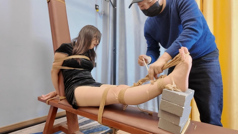 喜欢老虎凳的惠子又来了,这次不但要加到六块砖,还要把脚趾紧紧绑起来