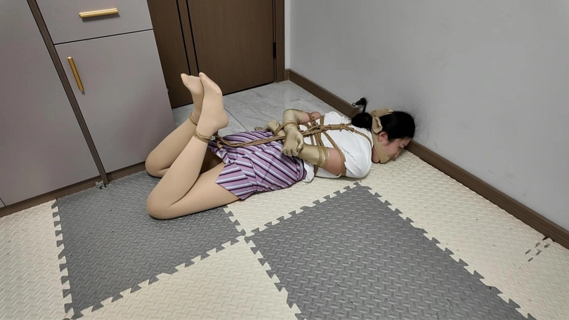 累了一天的空姐回到家直接来到卧室,躺下就睡着了,这个时候家里进来一名神秘男子,打开卧室房门,空姐猛的惊醒,一把被毛巾捂住口鼻,不一会就被捂晕.....驷马捆绑,丝袜堵嘴,剧烈挣扎,从床上到地上,胶带堵嘴,胶带捆绑,各种元素拉满