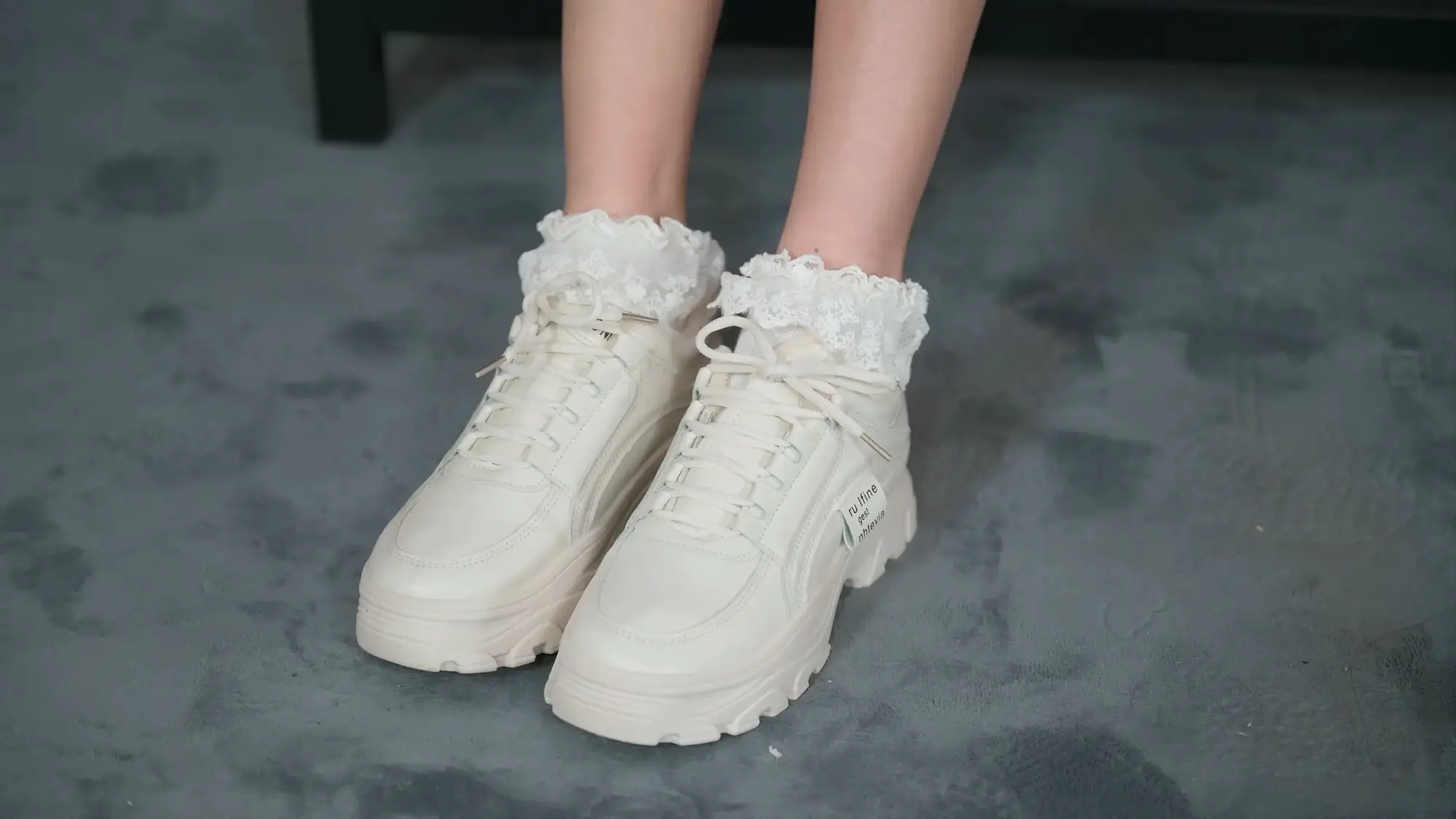 【撒琅制造】【美腿玉足系列】高挑足球短裙玫瑰配花边棉袜运动鞋加裸足--(无捆绑)