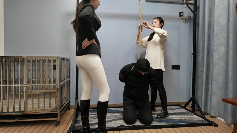 小韩回到家发现不对劲,没想到家里潜入一名小偷,练过功夫的小韩三下五除二就把小偷制服,经过审讯,小偷交代了很多之前做过的坏事,这个时候姐姐回来了,于是姐妹两个一起继续收拾这个无恶不作的小偷,耳光,踩踏,双鞭打,最后用绳子处以勒刑