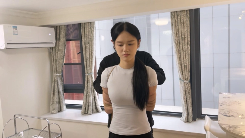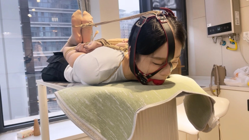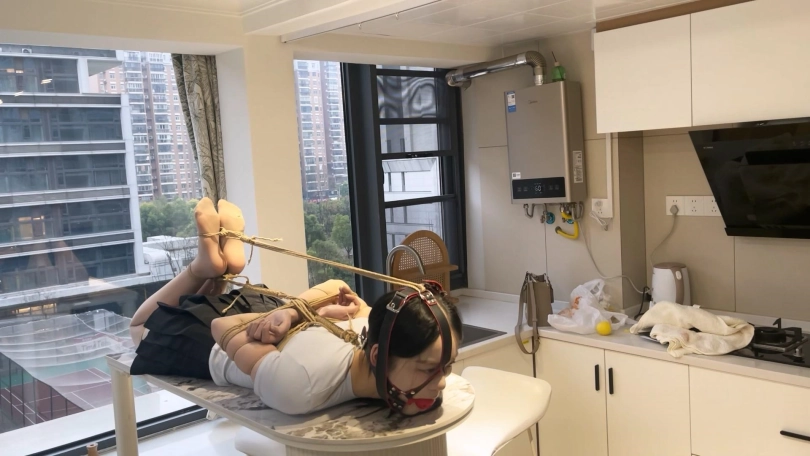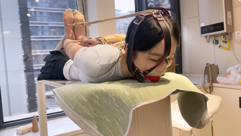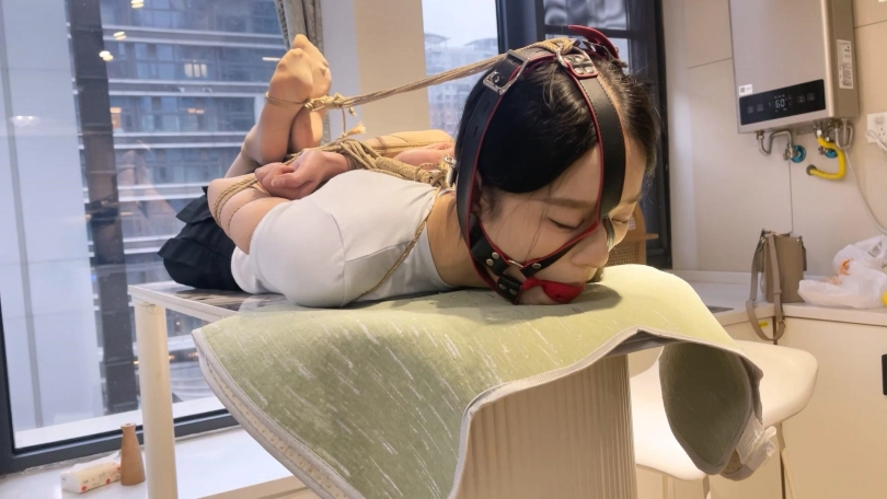 YOYO长相非常甜美,细支结硕果身材,很瘦但是很有料,属于是近期定拍到的极品模特了。这次给绑上超紧的中式五花,绳子勒到手臂肉里去了,给她绑成驷马放置在桌子上,再带上口球,留她一个人静静地流口水。