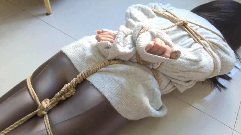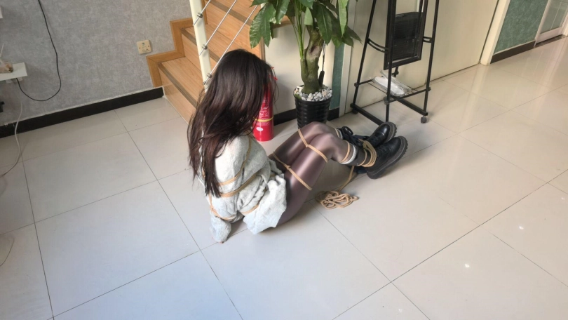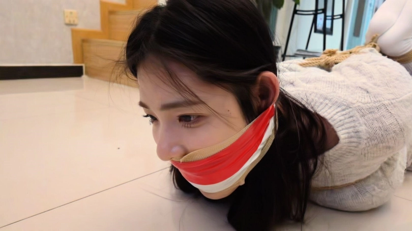 模特玖念。剧情介绍 近日J市出现多名女性失踪事件,记者玖念通过暗访调查,觉得一个高度可疑,为了让曝光事件,她决定去调查一下。玖念去调查,来到房间,她利用万能钥匙打开房门了,然后慢慢走了进去,来到客厅,发现桌子上摆满了绳子,胶带,于是说到:这绝对是犯罪地方,让我拍照取证。于是拿出手机拍照。正拍得起劲时,没有发现后面来的人,然后一双手捂住了她的嘴巴,然后把她摁倒在地上,玖念开始挣扎,坏人坐她身上,然后抓住她头发让她抬起头,接着用刀逼住她说到:胆子不小呀,送上门的小美女。玖念说到:我只是走错房间了,我啥也不知道。坏人说:给我老实点,先绑了再说,然后让她跪了下来,接着用绳子将她捆绑起,捆绑双手后,让她跪直,接着捆股绳然后再让她趴下,抓起双脚进行捆绑,捆绑完双脚后再进行驷马,将她捆成个粽子后,坏人脱下自己的棉袜,然后让玖念抬头,将袜子塞到她的嘴里,然后外面用橙色绷带封上,再用黄色胶带封上了。捆绑堵嘴完玖念后,坏人开始抚摸她全身,对她搜身,玖念趴着被摸全身,然后又给她翻个身摸脖子,胸和肚子,拉拉股绳。搜身中途玖念在挣扎并发出呜呜呜声音。坏人搜出了手机和银行卡,然后拍了拍玖念的脸,还拍了不少东西啊,我要去毁掉。然后离开,等坏人离开后玖念开始挣扎,左右挣扎,试图动手脚把连接手脚的绳子解开,剧烈挣扎并发出呜呜呜,一会解开了,然后她又坐起来挪动着往门口逃出去,准备到门口又靠着墙站起来跳着过去,在门口试图开门,这时被坏人然后用刀逼住她,让她跳回去,跳回原地后,坏人觉得绑得不够紧,有进行捆捆绑脱了她的靴子,再捆绑脚接着驷马,捆绑完毕后,解开她的嘴巴,让她张嘴,然后塞了块毛巾,觉得有空隙又塞了条丝巾然后用绷带缠绕,外面再用胶带封上,捆绑堵嘴完后,开始玩弄她,挠痒痒,还拉拉股绳,打屁股。玖念挣扎并呜呜呜呜,男主还说:想不到这女记者这么丰满,这会有好货了。还让玖念闻她的靴子,玩弄一会,坏人觉得累了,想要休息,但玖念可不行,得来个严厉捆绑,于是就给她绑了欧式直臂缚加驷马,捆绑完后,解开她的嘴巴,给她嘴里塞了豹纹袜子,然后又是绷带缠绕加胶带封嘴,捆绑堵嘴后,最后拍了拍她的脸和屁股说到:你给我老实待着。离开,留玖念在地上挣扎并发出呜呜呜声音。