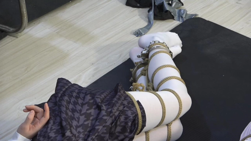 富豪捆绑宋伊雪,然后便离开了,留下两个被困成粽子一样的美女独自挣扎