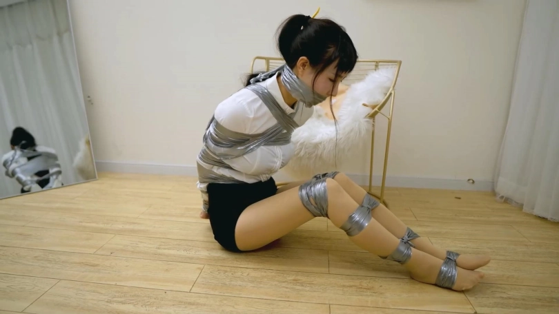 【4K映像】OL银色胶布紧缚