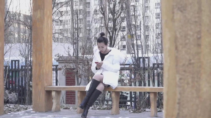 屌丝男在外面看见了一位玩手机的美女,穿的虽然是厚重的羽绒服,但是很诱惑,屌丝男不由得看呆了。