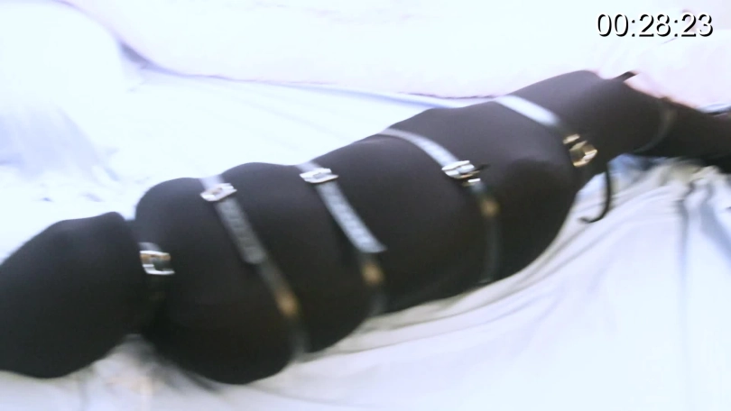 其实套完上面这些后,模特已经动弹不得了,但是为了追求束缚感,最后在外面套上七根拘束带,这个拘束带一套就是七根,套完之后就真的动弹不得了,而且束缚感极强!