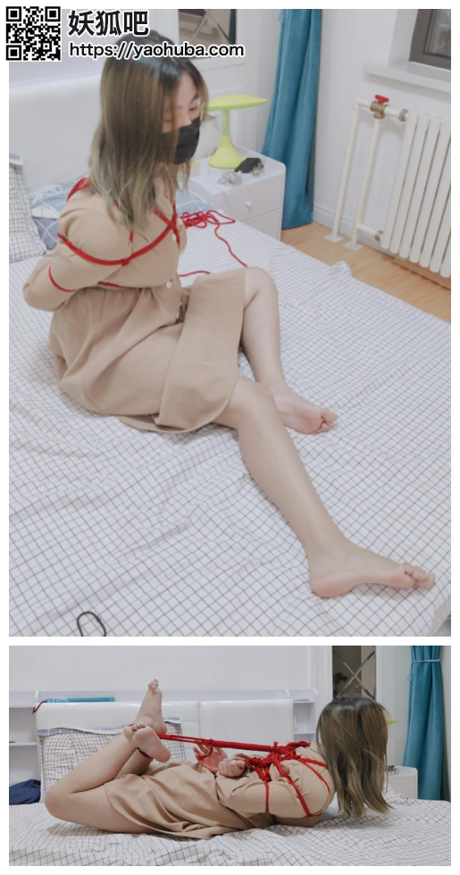 所以上来我就给她绑了个两头起的极限驷马,只能凭借小腹支撑全部体重。上半身就绑了20多米的绳子,严严实实,绝对不可能脱缚的绝望驷马躜蹄。