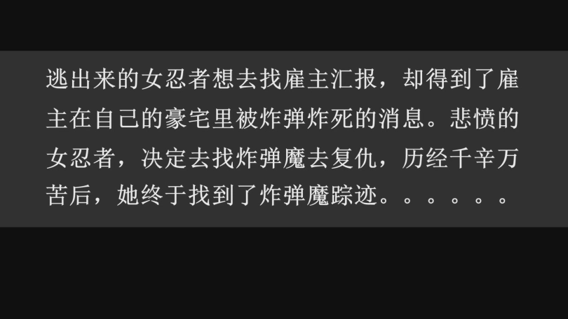 炸弹魔去复仇,历经千辛万苦后,她终于找到了炸弹魔踪迹。。。。。。