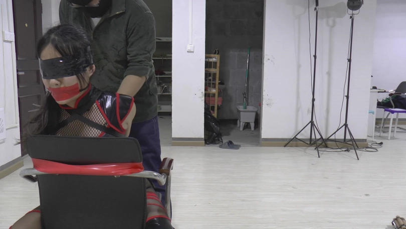 然后,女忍者被蒙眼堵嘴起来,被TJ一番。