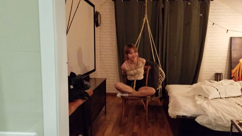 幼师约我第二次体验,初次吊缚,绑的不好,大家见谅哦。妹子第一次尝试口球,我去洗澡出来口水流了一地(好嫌弃。。。。)