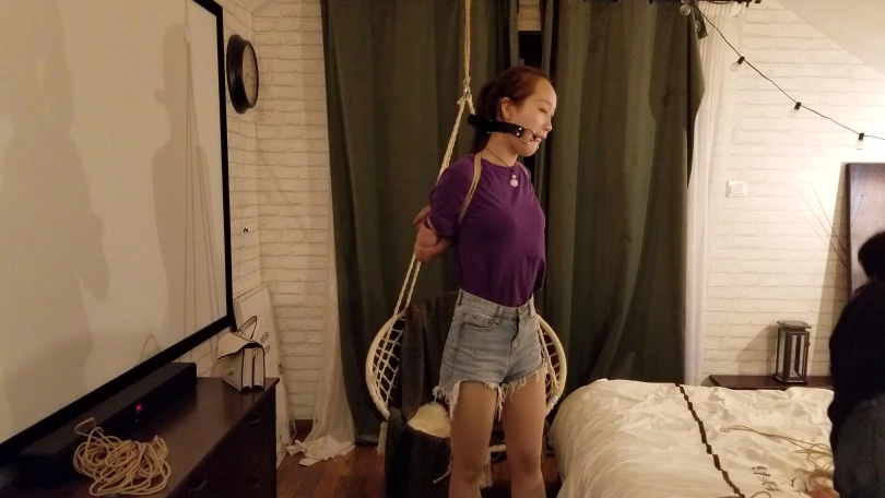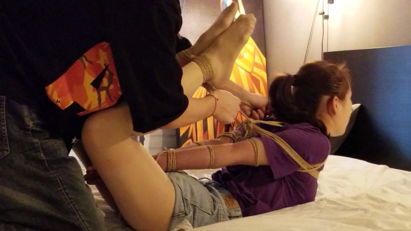 继上次民族舞的 小姐姐后,新妹子又刷新我对柔韧性的认识。轻松极限驷马。听口气,还可以在紧一些。不过,因为妹子是第一次捆绑,所以还是没有折磨的太狠,下次会在紧一些的。很调皮的妹子,被捆成驷马,还想办法踢我