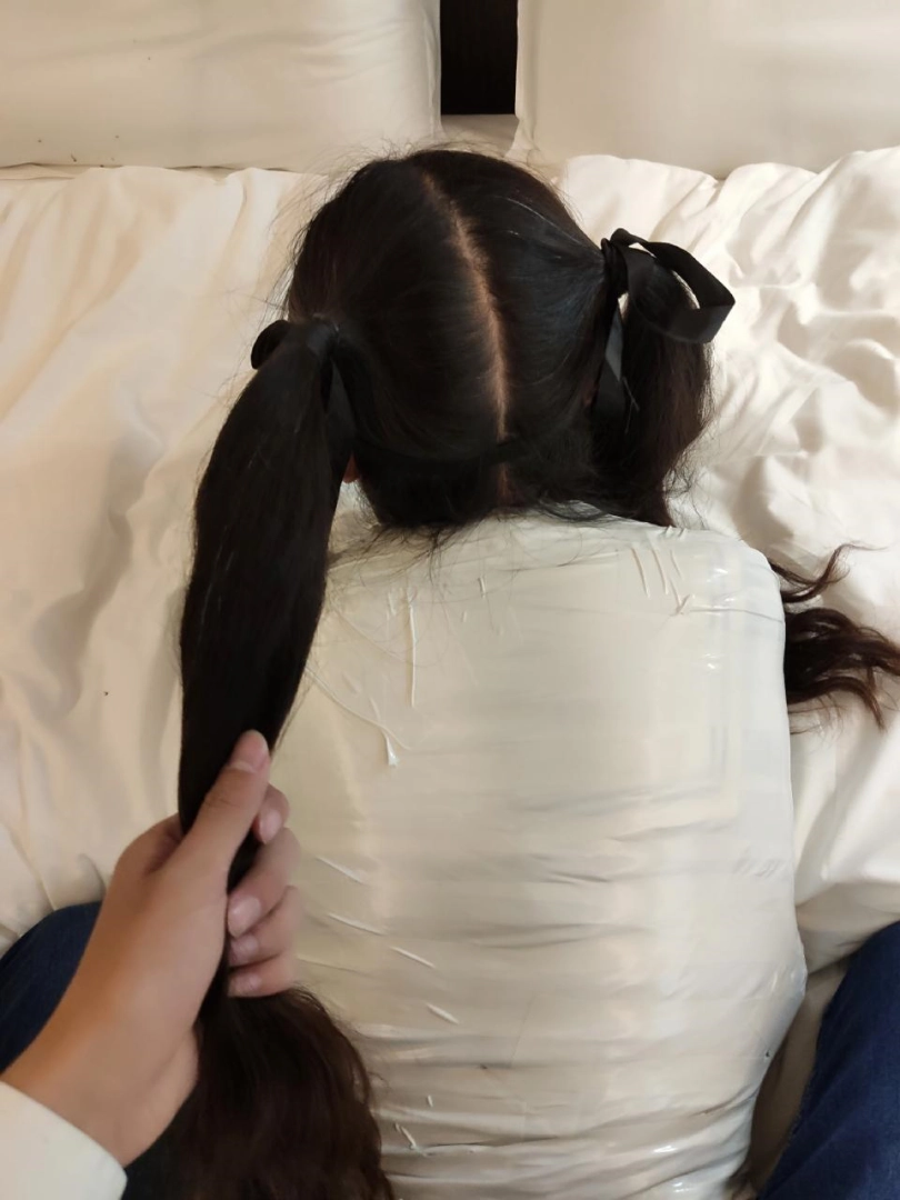 拉扯双马尾 强制抬头 人形胶带木乃伊的挣扎