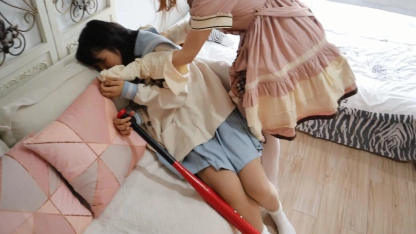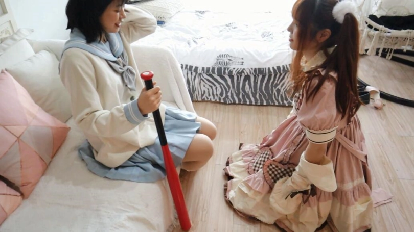 邱凝坐着拿着棒球棍,微笑着看着安诺,你知道错了码,安诺立马跪下,向邱凝认错,我以后再也不敢啦~ 这就对了,这样以后还和你玩~