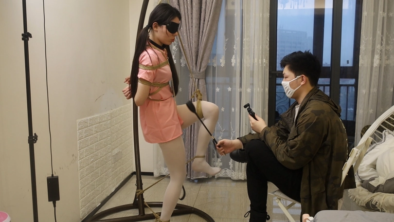 雅雅的白丝护士装,片足缚的鞭打调教。后高手加上片足缚,再戴上开口器。