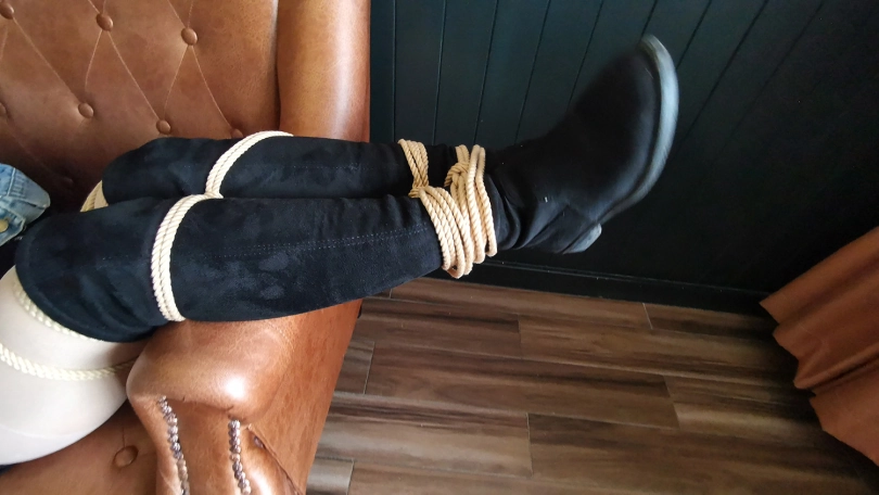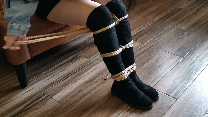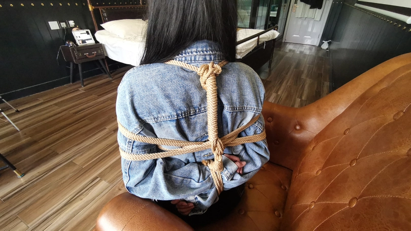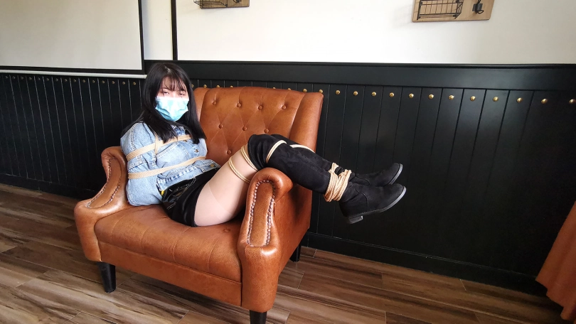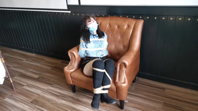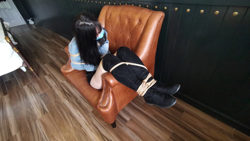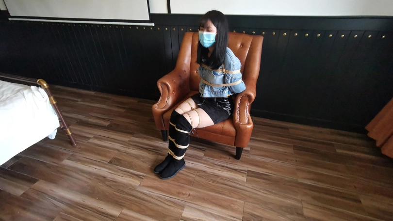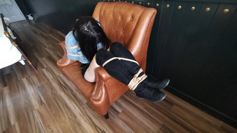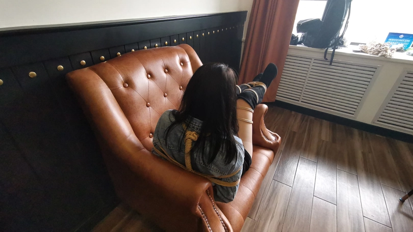 琳洛这丫头对捆绑比较感兴趣,平时没事就把自己的大腿绑上玩,这次让她自己把自己的腿捆绑上,上半身由我帮她捆绑好,坐在沙发上体验束缚挣扎的感觉。